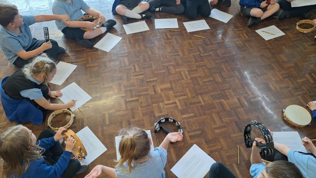 All primary schools in Conwy are offered First Experiences in music, giving pupils the opportunity to explore instruments such as ukalele, African drumming, samba kit, vocals, and DJing. The provision usually targets year 3, with 45-minute sessions over a 5 to 6-week period, and extends to smaller schools where appropriate.